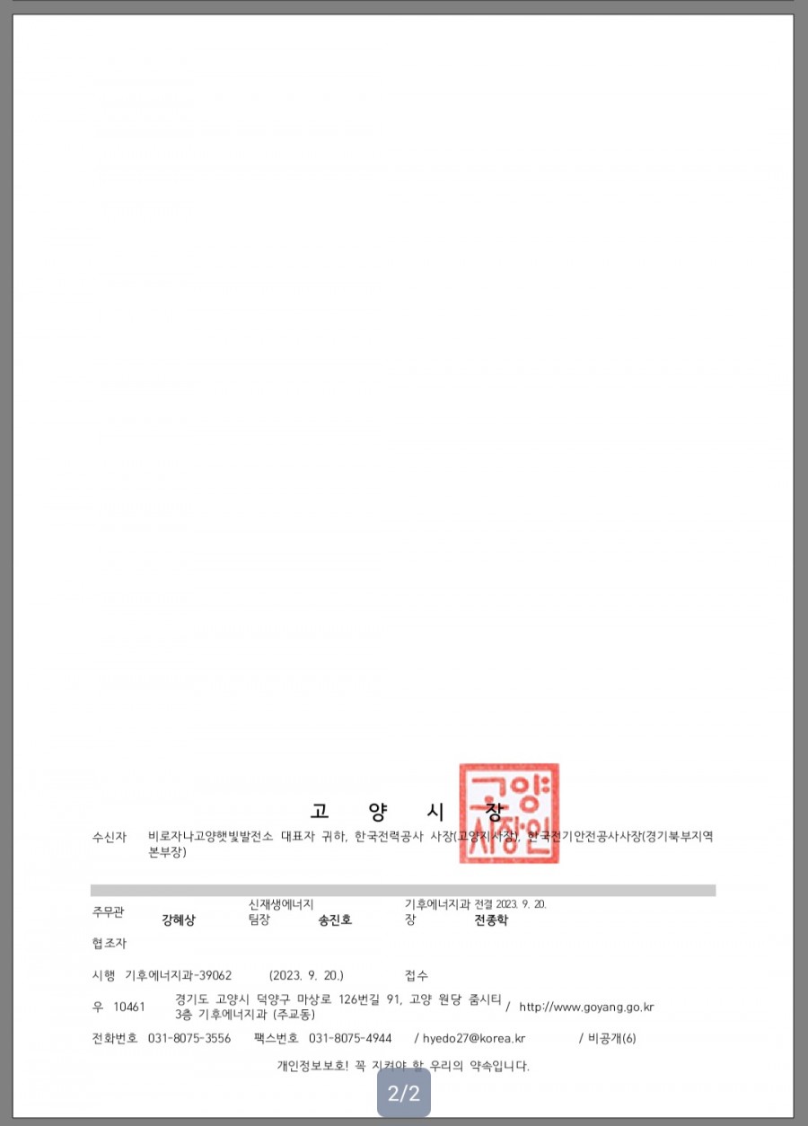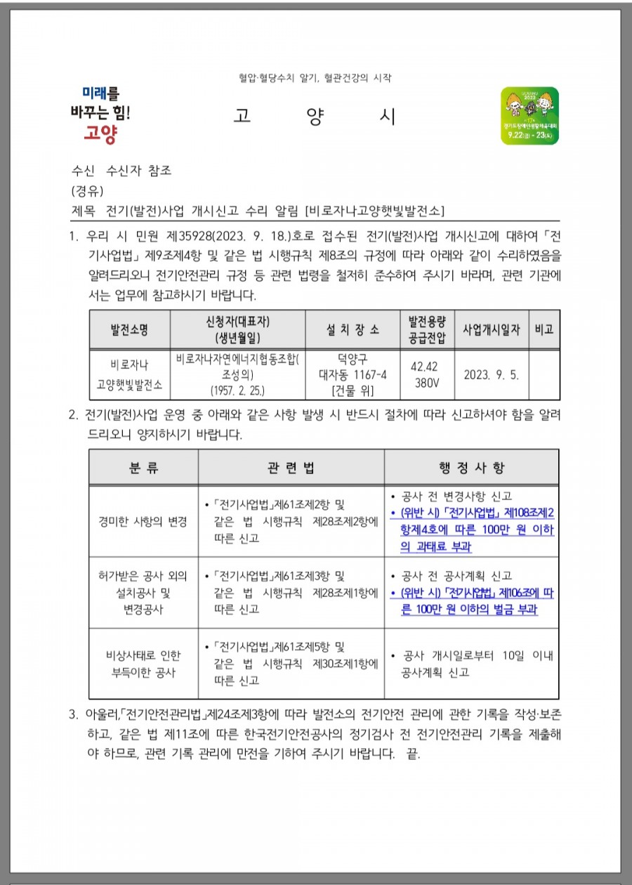 전기(발전)사업 개시신고 수리 완료 페이지 정보 작성자 vactan 작성일2023.09.21 조회147회 댓글0건 이전글 다음글 목록 프린트 본문 9월 20일 고양시로부터 전기사업 개시신고 수리가 완료되었습니다. 댓글목록 등록된 댓글이 없습니다. 이전글 다음글 목록 프린트