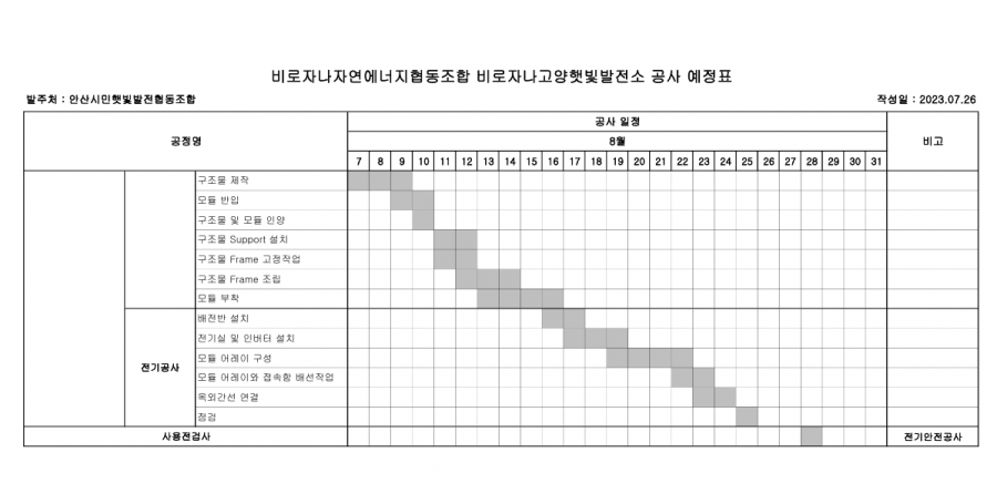 제1호 고양햇빛발전소 공사일정 페이지 정보 작성자 vactan 작성일2023.08.03 조회147회 댓글0건 이전글 다음글 목록 프린트 본문 비로자나자연에너지협동조합 제1호 고양햇빛발전소 공사일정을 공시합니다 댓글목록 등록된 댓글이 없습니다. 이전글 다음글 목록 프린트
